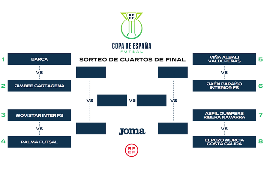 Cálida, Palma Futsal, Jaén FS, Ribera Navarra e Inter FS serão os oito