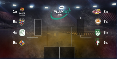 Após o fecho da Fase Regular, oito equipes lutarão pelo cobiçado título da LNFS.Barcelona, El Pozo Murcia, CA Osasuna Magna, Inter Movistar, Palma