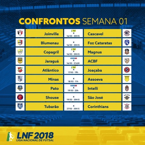 A Liga Nacional de Futsal está de voltaCom quatro jogos na sexta-feira (16/03), terá início a Liga Nacional de Futsal 2018, essa que será a sua 23