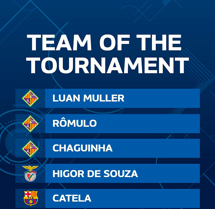 A UEFA apresentou, dia 11 de Junho o cinco ideal da final 4 da UEFA Futsal Champions League.Três jogadores do Mallorca Palma, um do SL Benfica e outr